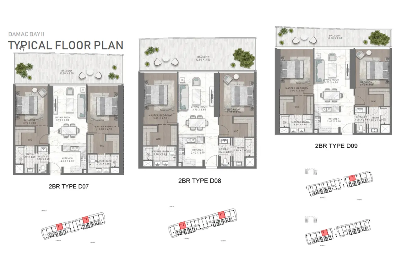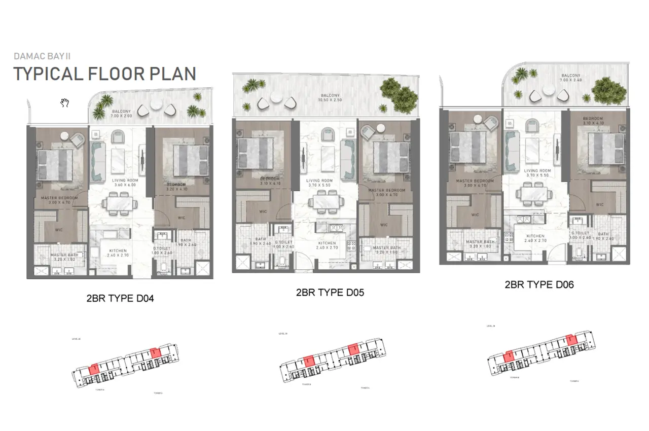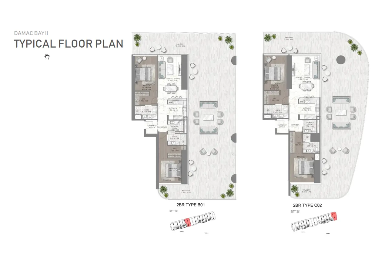 Discover a variety of living options at DAMAC Bay 2 by Cavalli. From cozy 1-bedroom apartments to spacious 2 and 3-bedroom options on the lower floors, all the way up to exclusive 3 to 5-bedroom duplexes on the top floors – there's something for everyone. Each residence is a masterpiece of contemporary architecture, featuring futuristic interiors, top-notch finishes, and smart home technology. What sets these homes apart is the private pool that comes with each apartment and duplex, offering residents a refreshing dip right at home.