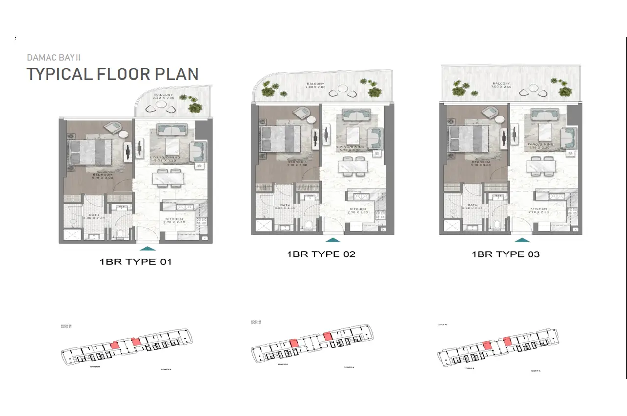Discover a variety of living options at DAMAC Bay 2 by Cavalli. From cozy 1-bedroom apartments to spacious 2 and 3-bedroom options on the lower floors, all the way up to exclusive 3 to 5-bedroom duplexes on the top floors – there's something for everyone. Each residence is a masterpiece of contemporary architecture, featuring futuristic interiors, top-notch finishes, and smart home technology. What sets these homes apart is the private pool that comes with each apartment and duplex, offering residents a refreshing dip right at home.