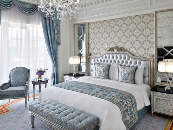 Discover the epitome of luxury at Raffles Residences & Penthouses on The Palm Dubai – The Royal Villa. This regal haven, boasting four bedrooms, is a true testament to unrivaled opulence, gracefully spread across three levels amid meticulously manicured gardens with swaying palms that epitomize the resort’s pristine ambiance.