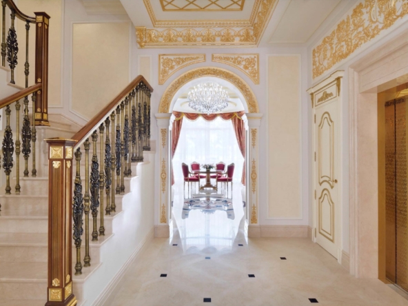Indulge in the pinnacle of opulence across four levels of pure refinement at the Royal Villa, situated within the esteemed Raffles The Palm Dubai Hotel, Crescent West, Palm Jumeirah. Here, dreams of Arabian nights come alive, promising an unforgettable sojourn. Welcome to a world where luxury knows no boundaries, every moment is treasured, and The Royal Villa stands as your exclusive palace on The Palm.